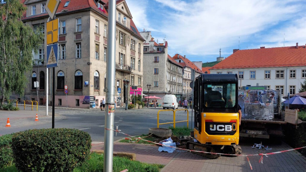 Prosimy o ostrożność w miejscu prowadzonych prac, omijanie i bezpieczne przechodzenie przez skwerek przy obelisku upamiętniającym synagogę.