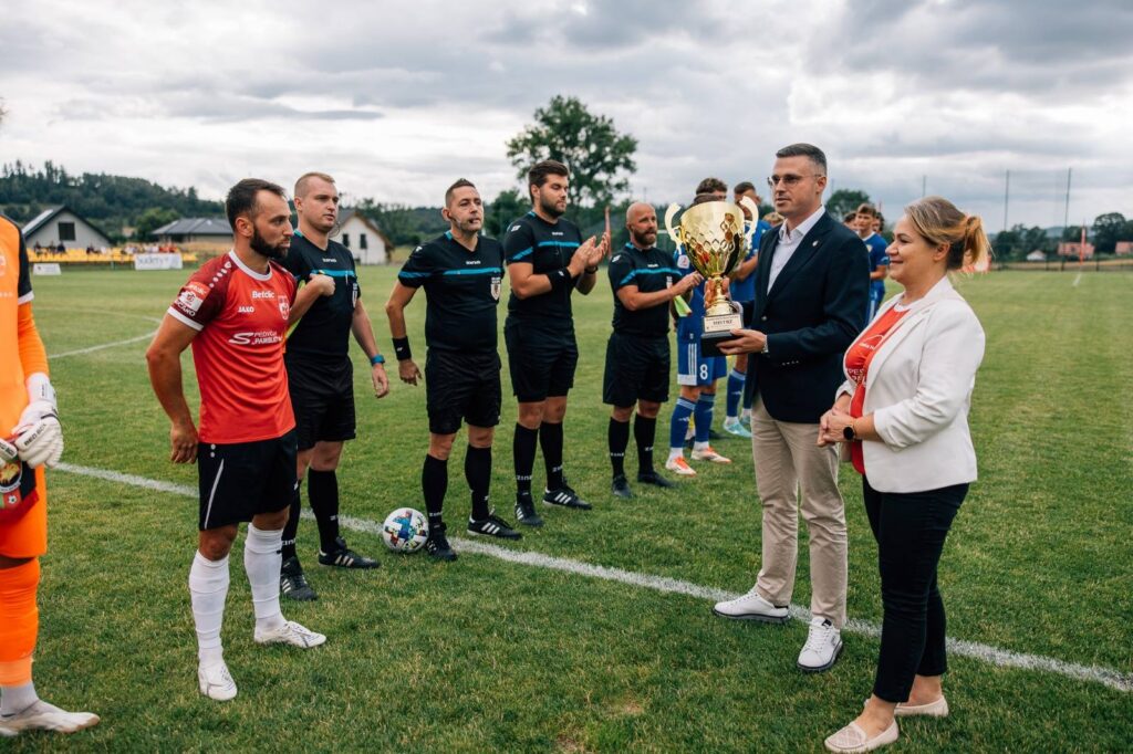 Symbolicznego aktu dokonali: Łukasz Czajkowski, prezes Dolnośląskiego Związku Piłki Nożnej, oraz Adrianna Mierzejewska, wójt Gminy Nowa Ruda.