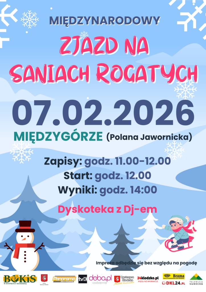 Strona głównaAktualnościArtykuły Prasowe Zapowiedzi Wydarzeń Międzynarodowy zjazd na saniach rogatych w Międzygórzu już 7 lutego Piotr Kramnik 2026-01-19 0 41 7 lutego w malowniczym Międzygórzu zorganizowany zostanie Międzynarodowy zjazd na saniach rogatych. Tags2026MiędzygórzeMiędzynarodowy zjazd na saniach rogatychprogram Udział FacebookTwitterWhatsAppE-mail Poprzedni artykułS8 coraz bliżej pełnej realizacji. Podpisano umowę na odcinek Łagiewniki – Niemcza Piotr Kramnikhttps://tvklodzka.pl powiązane artykuły Radków Koncert Kolęd w blasku 1000 świec w Wambierzycach Artykuły Prasowe Gmina Kłodzko: „Pastorałka dla seniora” Artykuły Prasowe Pomóżmy Alinie wrócić do zdrowia! Specjalne stoisko na kłodzkim Jarmarku Świątecznym ZOSTAW ODPOWIEDŹ Anulu odpowiedź Komentarz: Proszę wpisać swój komentarz! Nazwa:* Proszę podaj tutaj swoje imię E-mail:* Wpisałeś nieprawidłowy adres e-mail Wpisz tutaj swój adres e-mail Strona internetowa: Zapisz moje imię i nazwisko, adres e-mail i witrynę internetową w tej przeglądarce do następnego komentowania. 32,000FaniLubię800ObserwującyObserwuj6,200SubskrybującySubskrybuj Artykuły prasowe S8 coraz bliżej pełnej realizacji. Podpisano umowę na odcinek Łagiewniki – Niemcza Artykuły Prasowe Strażacy ćwiczyli ratownictwo lodowe. Apel o ostrożność na zamarzniętych akwenach Aktualności Zimowy Półmaraton Gór Stołowych już w najbliższą sobotę. Wśród gości specjalnych Piotr Pustelnik i Janusz Gołąb Aktualności Ruszył nabór do służby przygotowawczej w KP PSP w Kłodzku Artykuły Prasowe Szukasz atrakcyjnej siedziby dla swojej firmy? Skorzystaj z oferty Inkubatora Przedsiębiorczości w Budzowie Artykuły Prasowe