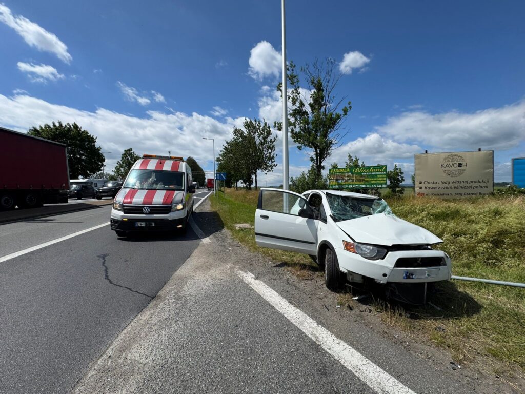 W środę, 25 czerwca ok. godz. 8:45 na skrzyżowaniu drogi krajowej nr 8 z ul. Noworudzką w Kłodzku doszło do zderzenia samochodu osobowego marki Mitsubishi z pojazdem ciężarowym.