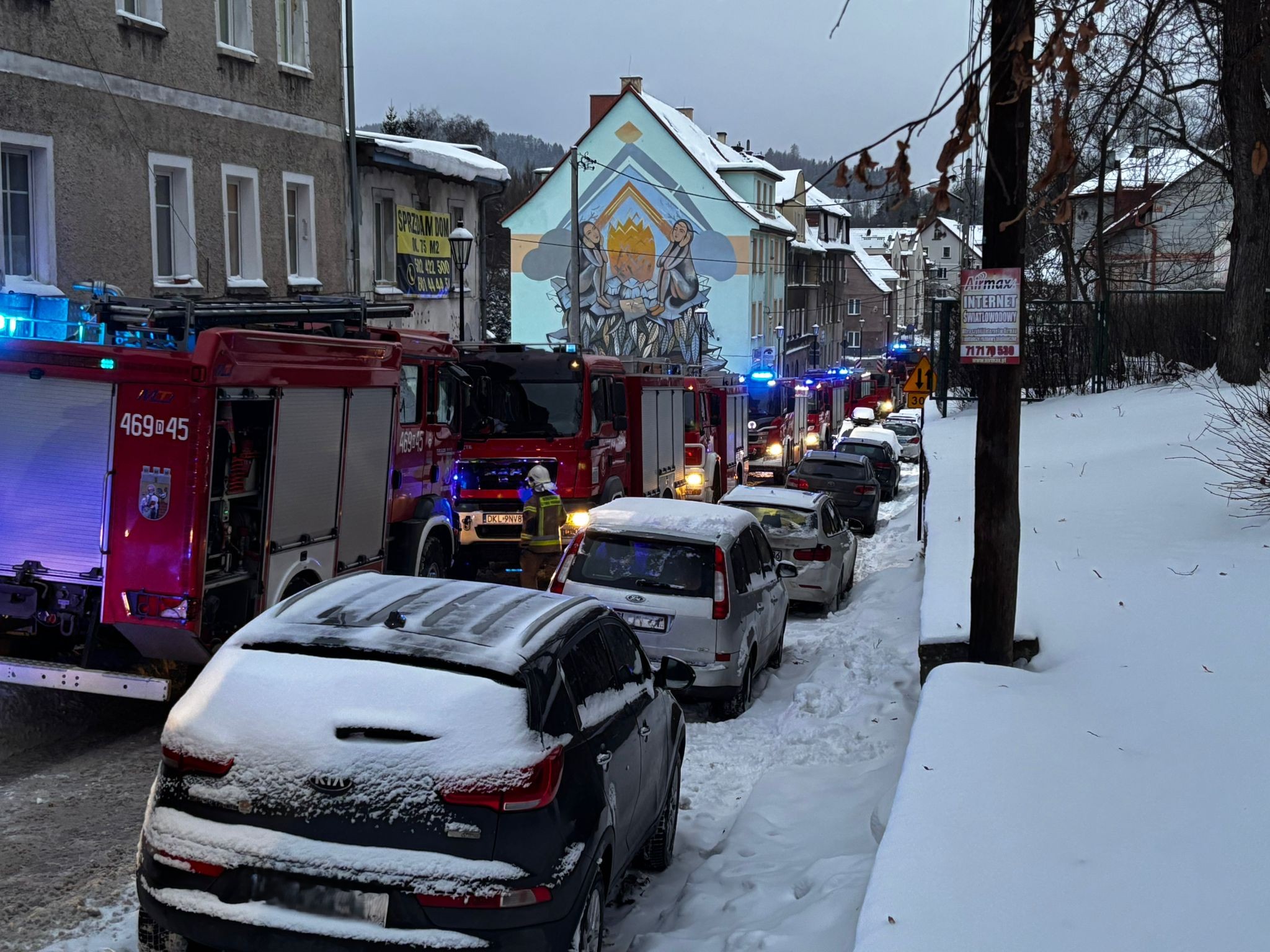 W niedzielę, 11 stycznia około godziny 15:50 na ulicy Słowackiego w Dusznikach-Zdroju doszło do pożaru na klatce schodowej w trzypiętrowym budynku mieszkalnym. Na miejsce zadysponowano 9 jednostek straży pożarnej oraz pogotowie ratunkowe.