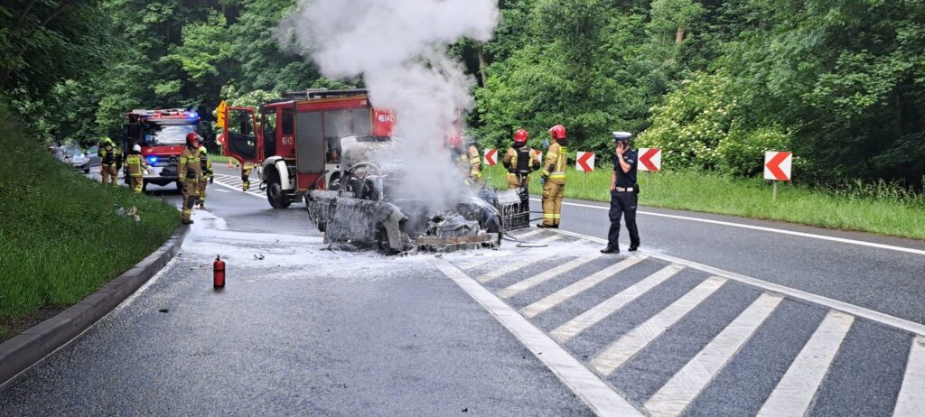 W piątek, 31 maja ok. godz. 14.45 na drodze krajowej nr 8 w Dębowinie doszło do pożaru samochodu osobowego marki Audi. Na miejsce zadysponowano straż pożarną z Kłodzka, Barda oraz Ząbkowic Śląskich. Na czas akcji gaśniczej droga na odcinku Boguszyn- Bardo była całkowicie zablokowana.