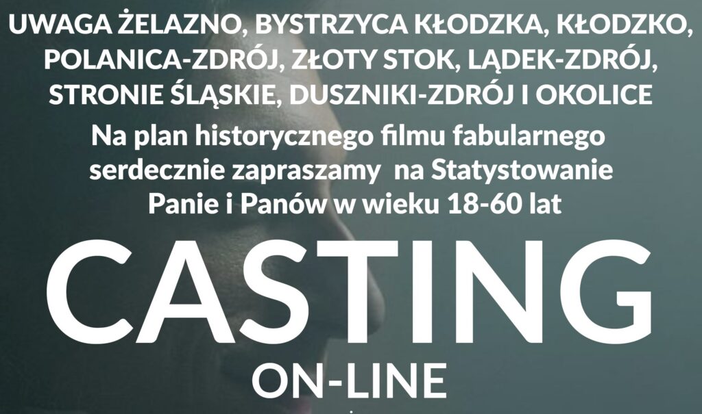 – Uwaga Żelazno, Bystrzyca Kłodzka, Kłodzko, Polanica-Zdrój, Złoty Stok, Lądek-Zdrój, Stronie Śląskie, Duszniki-Zdrój i okolice. Jeżeli chcesz przeżyć przygodę swojego życia i zobaczyć jak wygląda praca na planie filmowym to w dniach 30 sierpnia, 1 i 2 września (piątek, niedziela, poniedziałek) w miejscowości Żelazno będziemy nagrywać zdjęcia do największej polskiej fabularnej produkcji historycznej realizowanej w tym roku, pt.”CHOPIN, CHOPIN!”. Serdecznie zapraszamy do udziału kobiety i mężczyzn w wieku 18-60 lat którzy jako STATYŚCI wcielą się w postacie wieśniaków, mieszczan, klasy wyższej i szlachty – zachęca załoga MKM Studio.