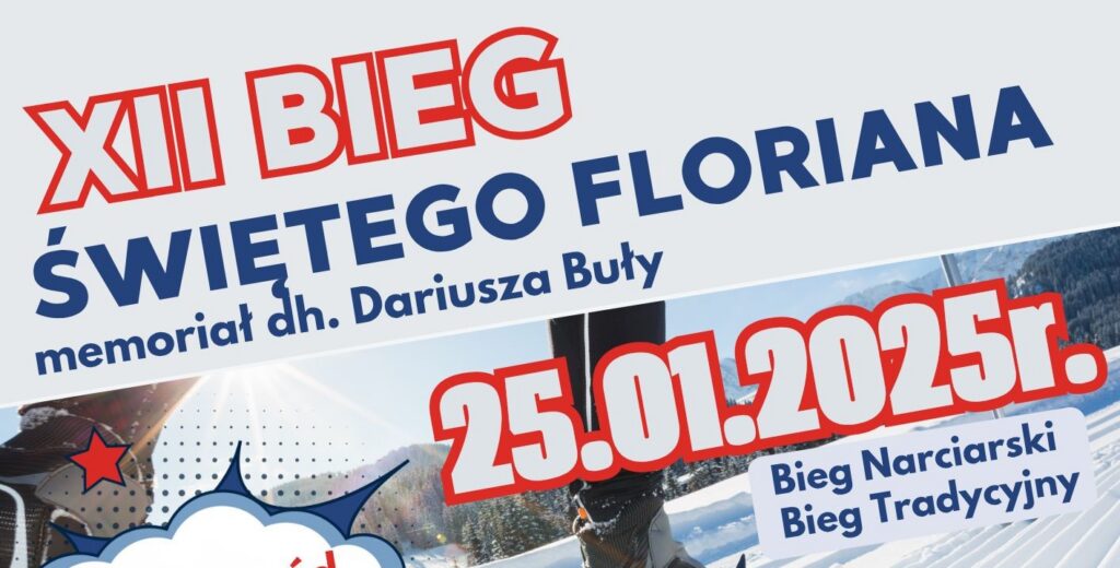 Gminny Ośrodek Kultury, Sportu i Rekreacji w Stoszowicach zaprasza do udziału w XII Biegu Świętego Floriana który odbędzie się 25 stycznia 2025 roku na trasie „Pętla Wilcza”.