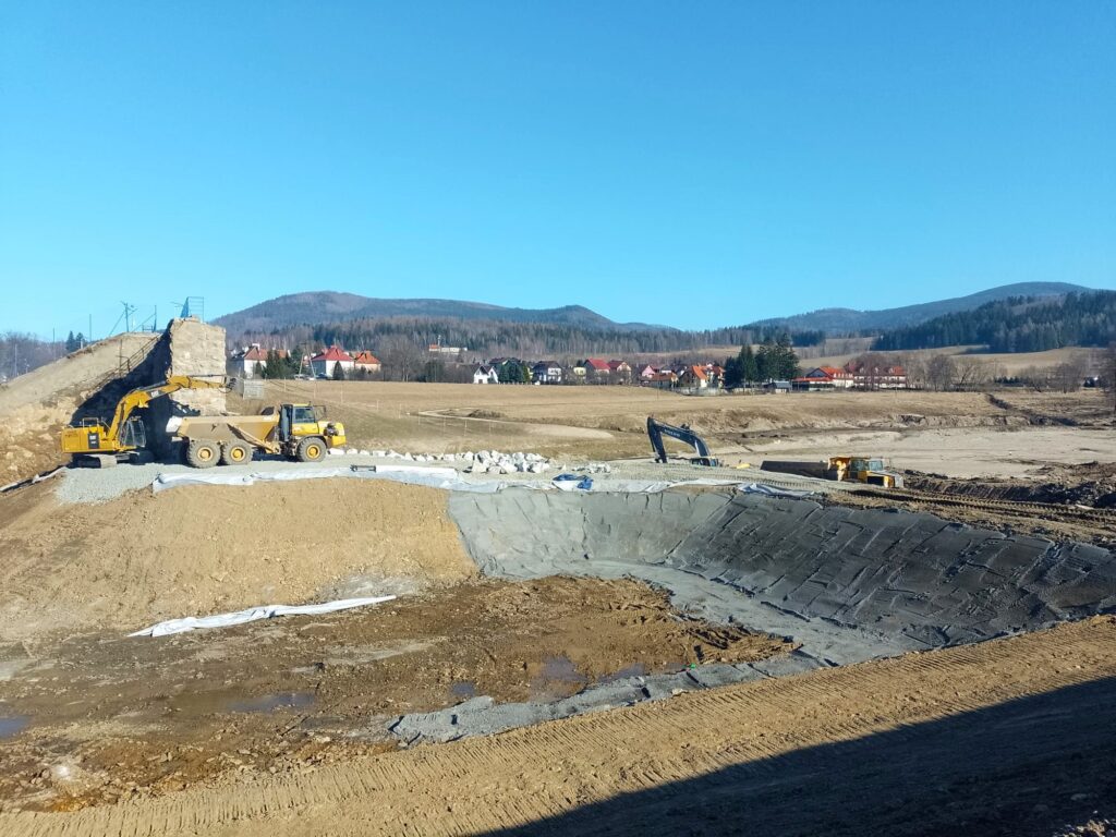 W najbliższych dniach kontynuowane będą dostawy kamienia hydrotechnicznego, który następnie zostanie ułożony na korpusie grodzy. Kolejny etap przewiduje rozpoczęcie betonowania narzutu kamiennego oraz dalsze prace nad profilowaniem przelewu stokowego.